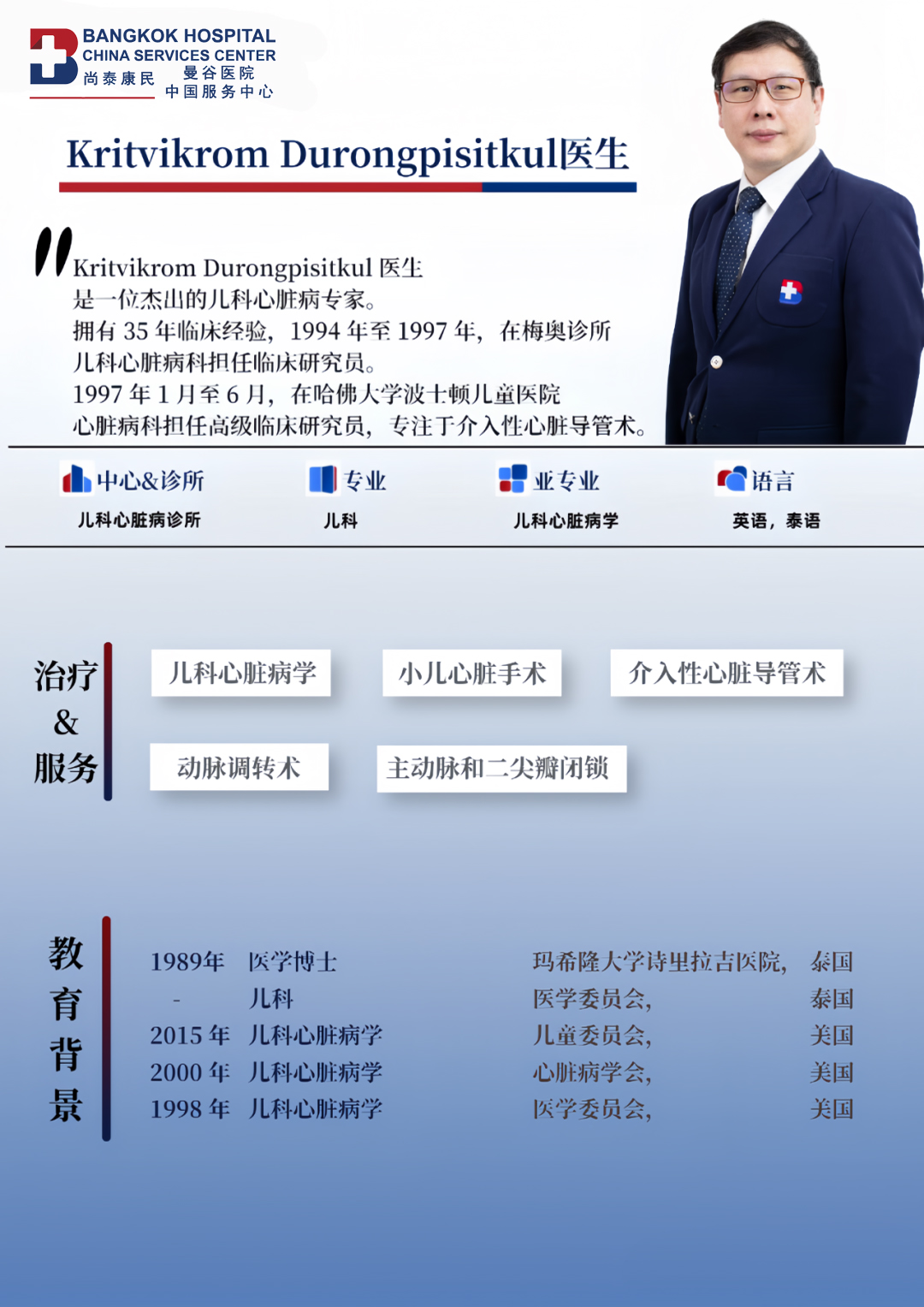 泰国曼谷医院儿童心脏病学与儿童中心国际认证专家医师名录