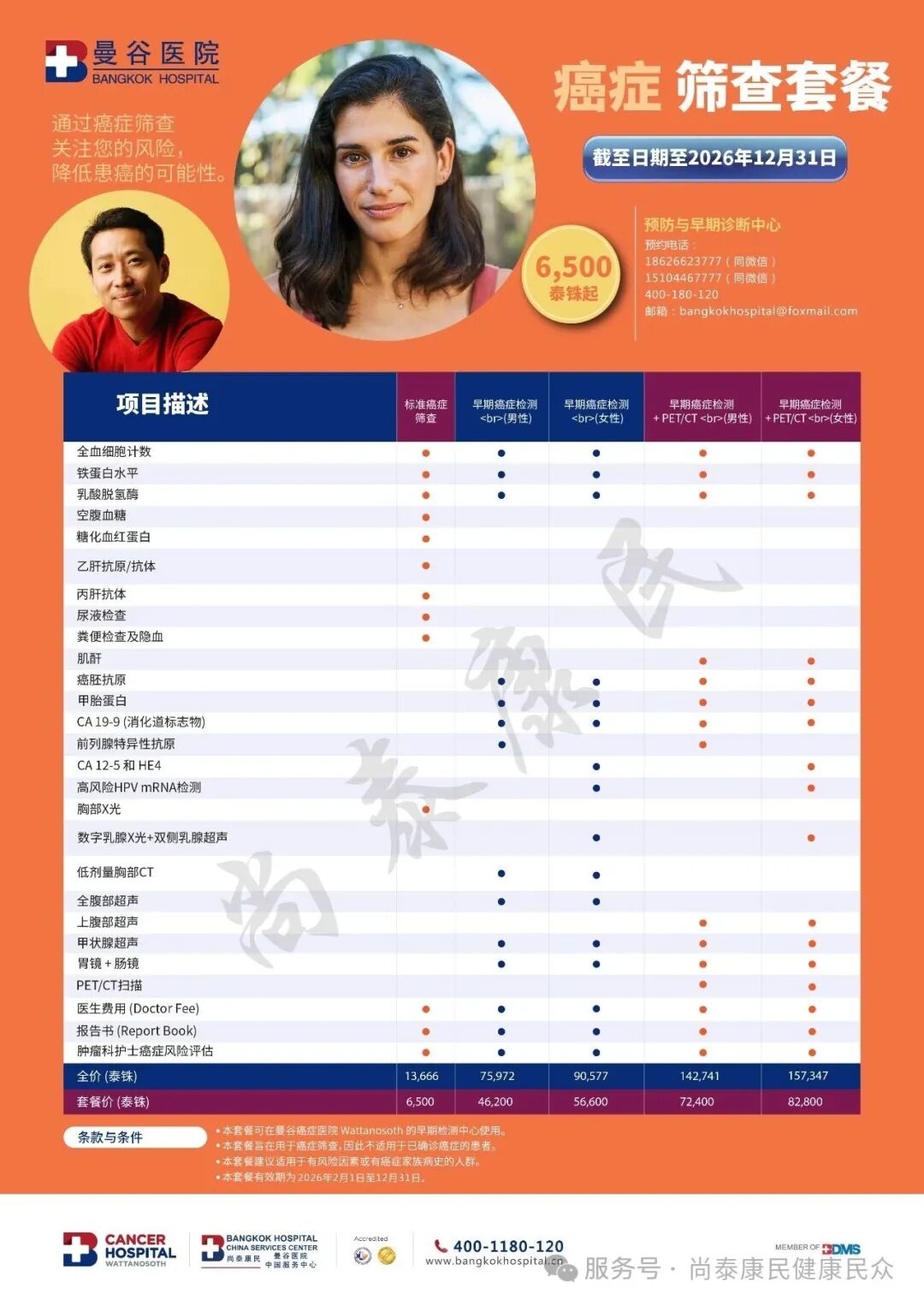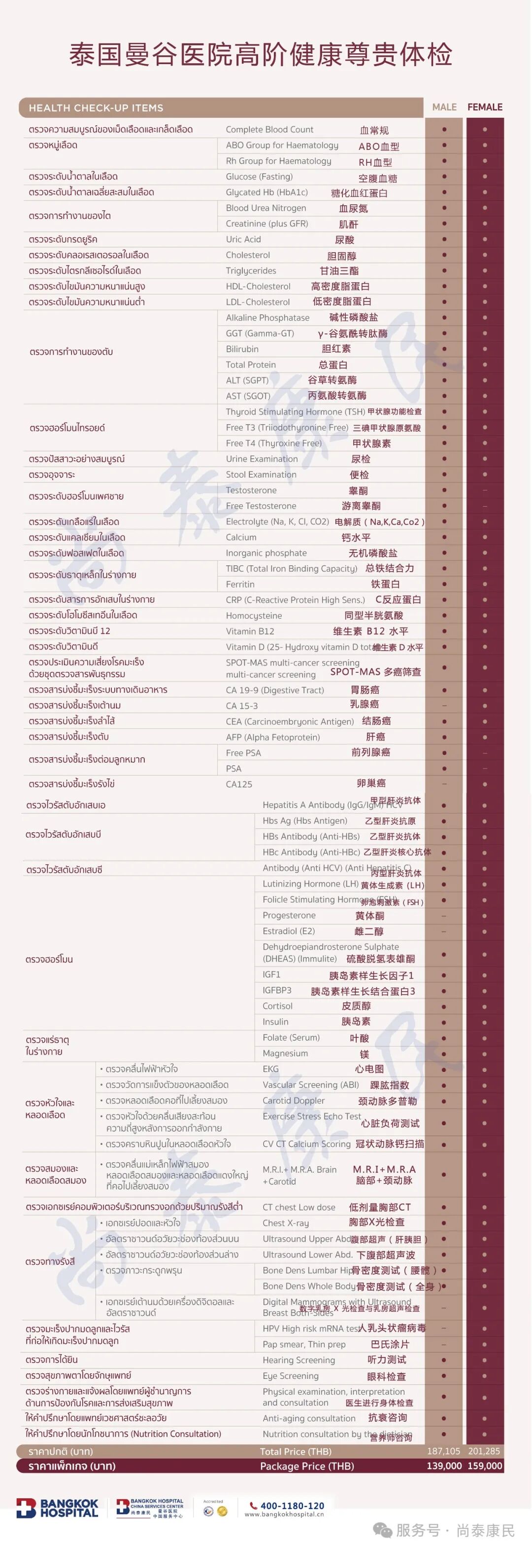 尚泰康民——泰国曼谷医院服务中心提醒:以上价格供大家参考,具体请跟医院前台确认。