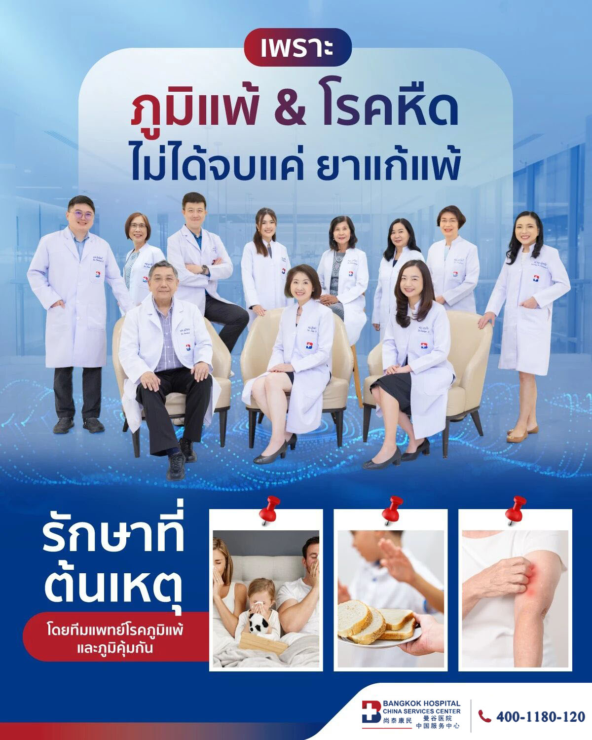 泰国曼谷医院过敏与哮喘中心针对病因进行个体化诊断与治疗方案制定,有助于降低长期并发症风险,由过敏及免疫专科团队为儿童与成人提供持续照护并提供以下服务。