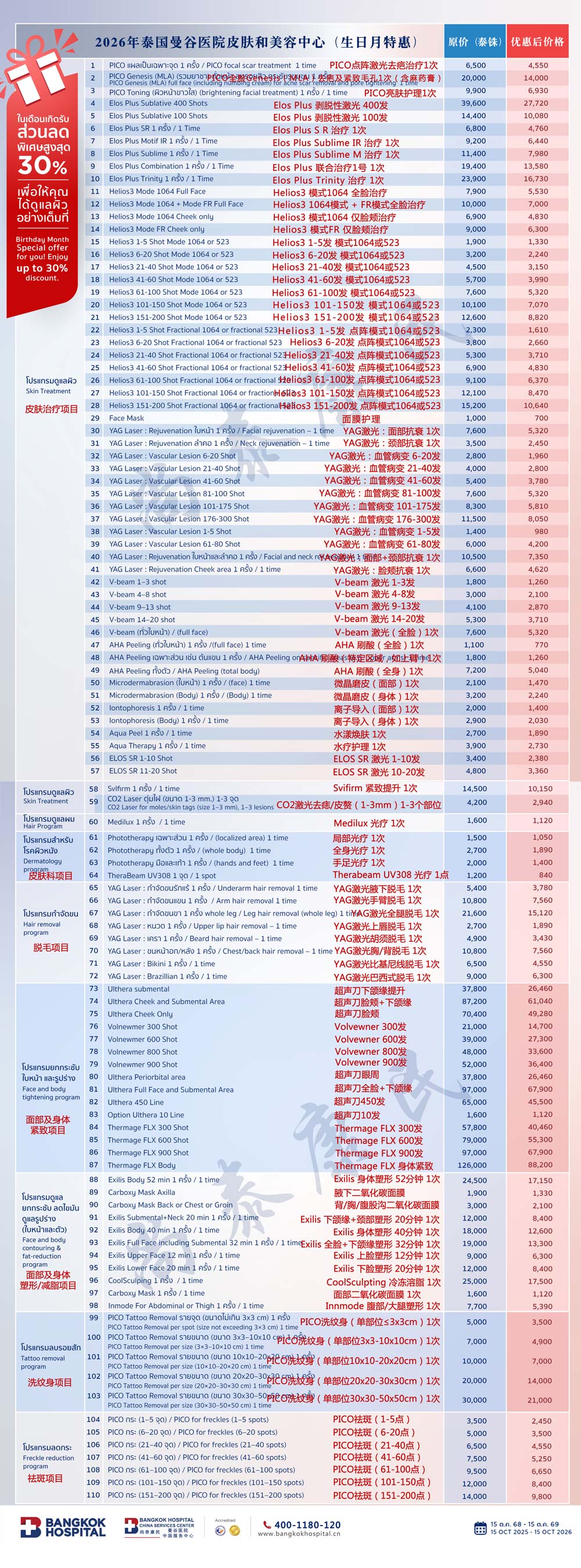 2026年泰国曼谷医院皮肤和美容中心项目(生日月特惠)