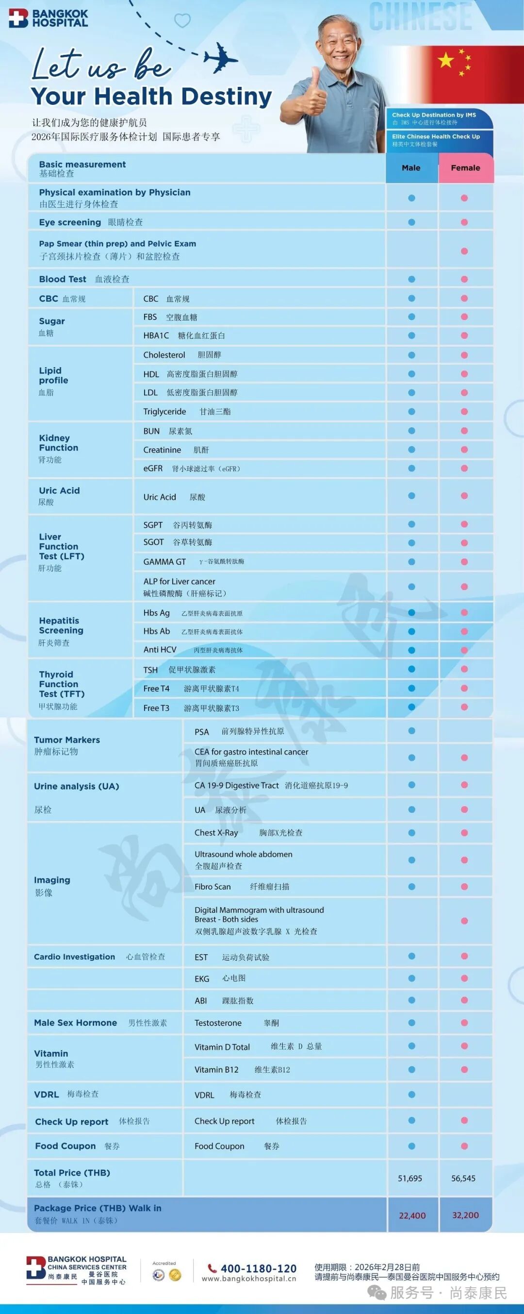 尚泰康民——泰国曼谷医院服务中心提醒:以上价格供大家参考,具体请跟医院前台确认。