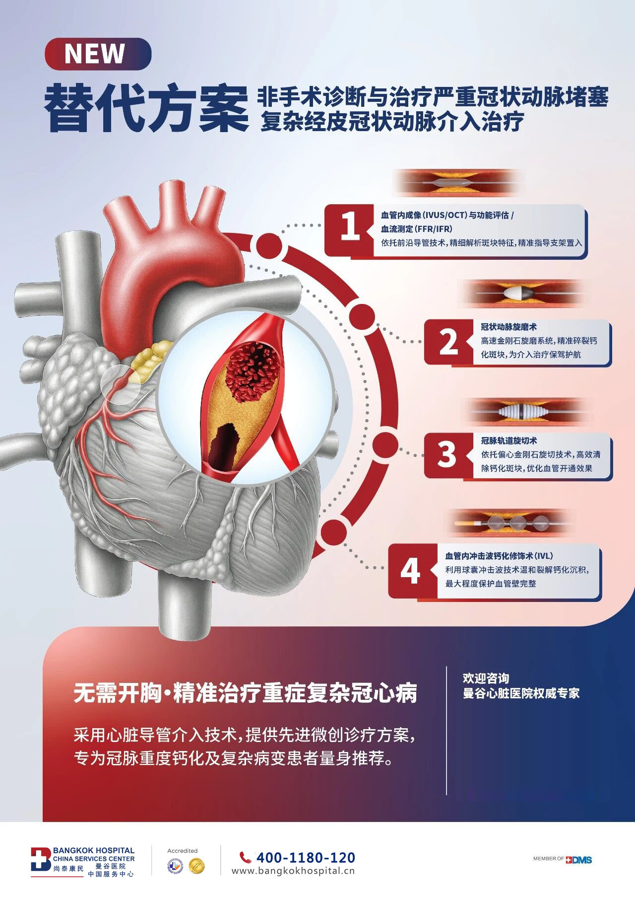 曼谷医院心脏医院用心脏导管介入技术,提供先进微创诊疗方案,专为冠脉重度钙化及复杂病变患者量身推荐。