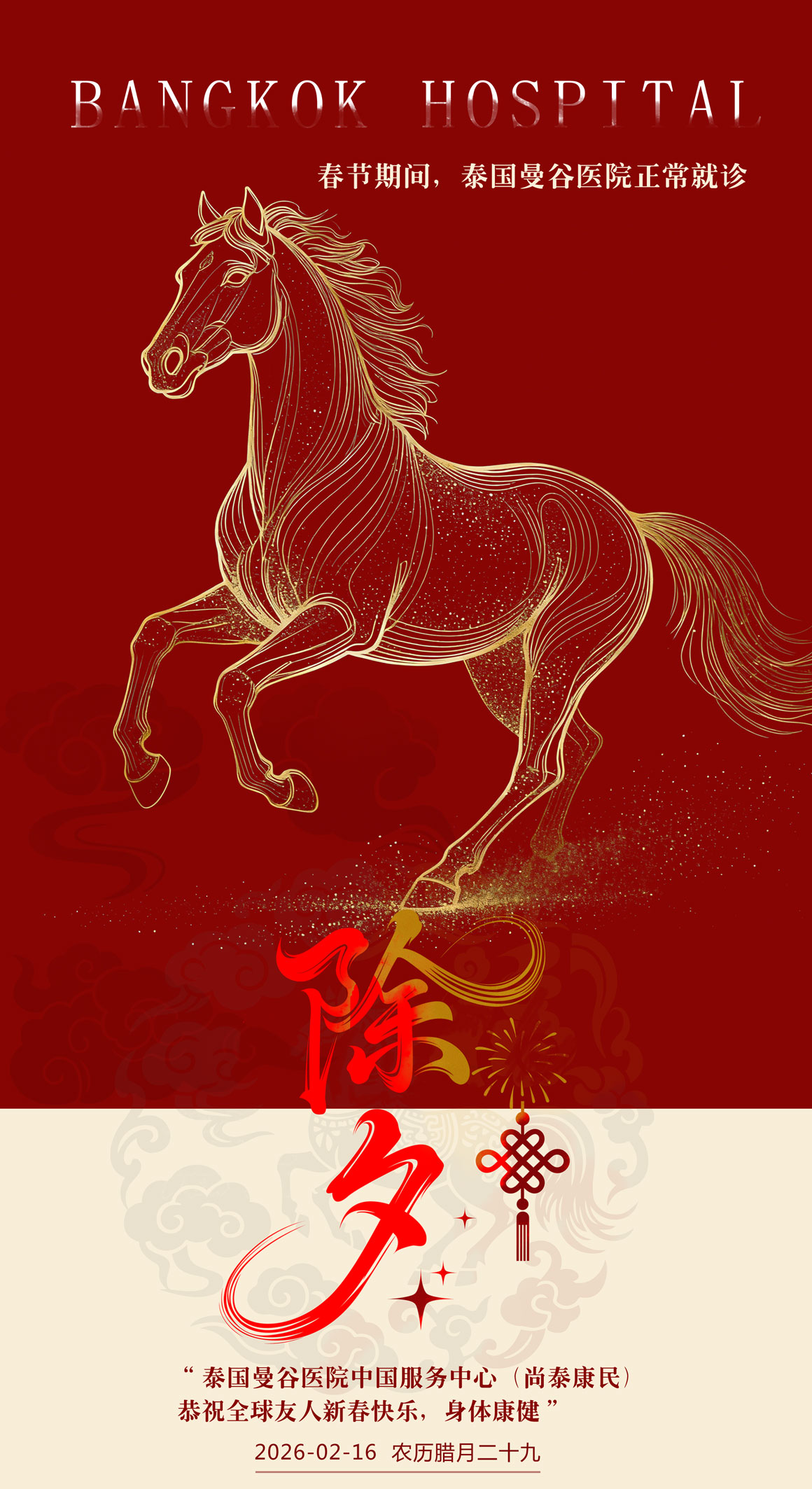 岁序常易,华章日新。当新春的暖意洒满大地,健康成为跨越国界、连接万家的共同心愿。作为东南亚医疗标杆、全球患者信赖的高端医疗目的地,泰国曼谷医院(BANGKOK HOSPITAL)谨以初心致新岁,以匠心护安康,与全球每一位朋友携手,共赴崭新的健康征程。